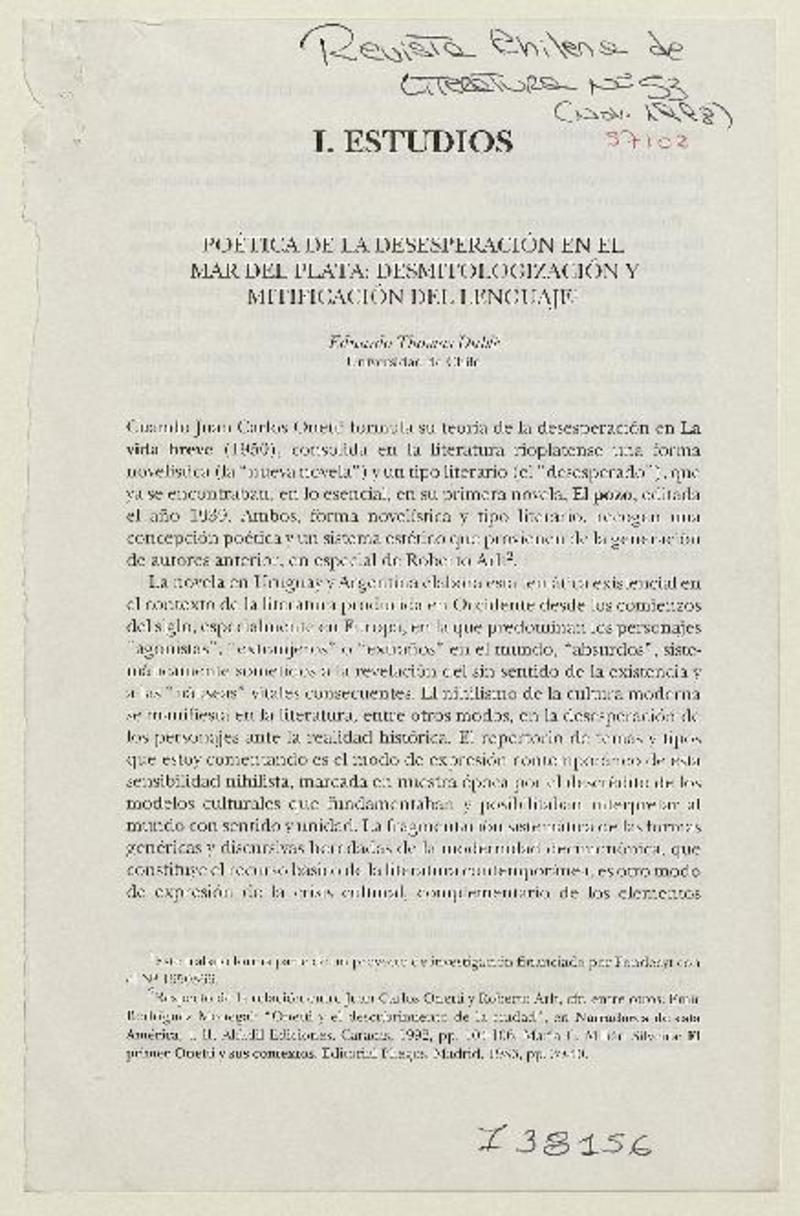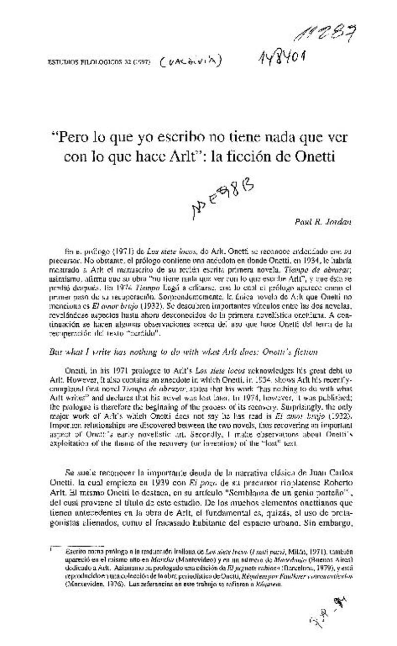 "Pero lo que yo escribo no tiene nada que ver con lo que hace Arlt", la ficción de Onetti [artículo] Paul R. Jordan.