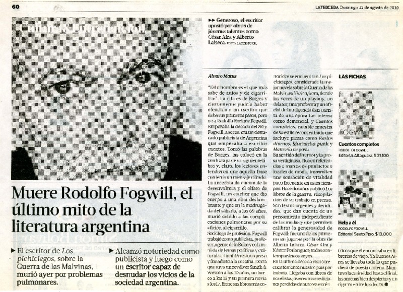 Muere Rodolfo Fogwill, el último mito de la literatura argentina [artículo] Álvaro Matus.