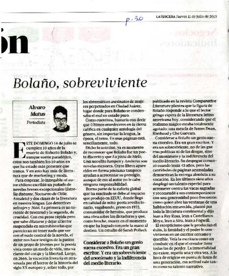 Bolaño, sobreviviente [artículo] Alvaro Matus
