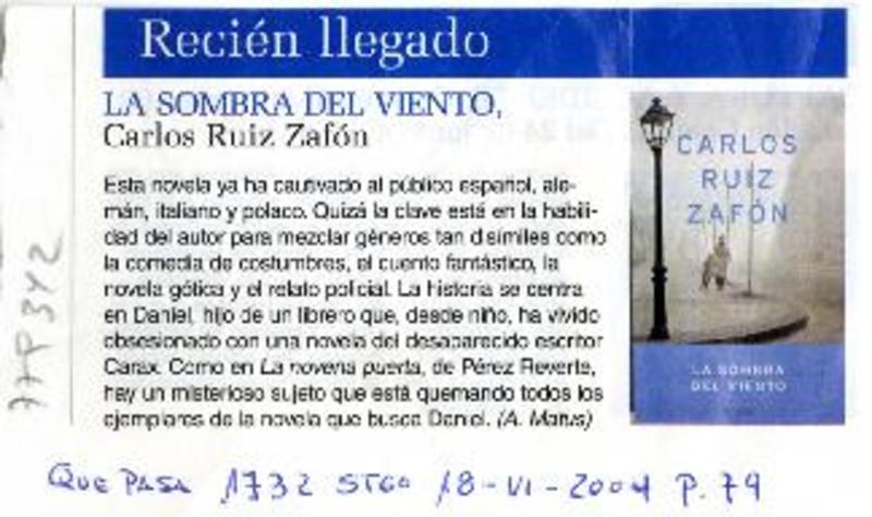 Autores chilenos - Ruíz Zaldívar, Carlos - Sombra del viento, La