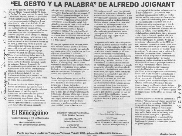 "El gesto y la palabra" de Alfredo Joignant [artículo] Rodrigo Larraín
