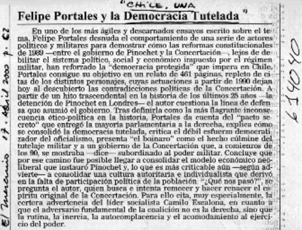 Autores chilenos - Democracia tutelada - Portales, Felipe - Entrevistas