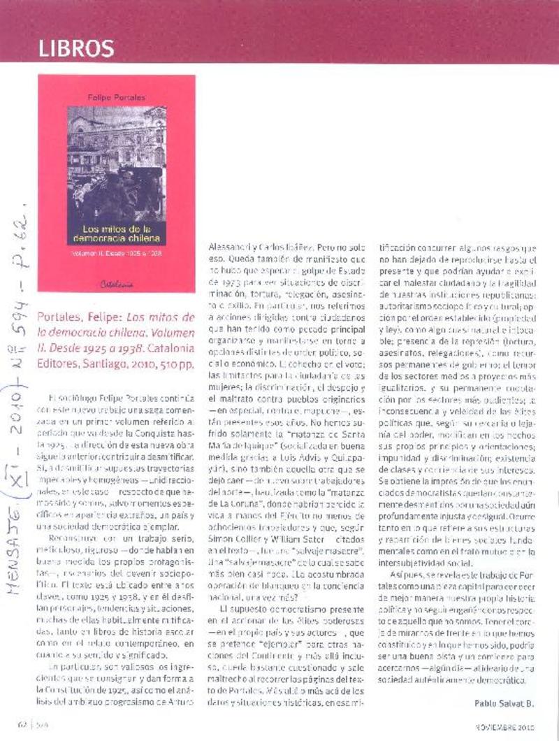 Autores chilenos - Portales, Felipe - Mitos de la democracia chilena