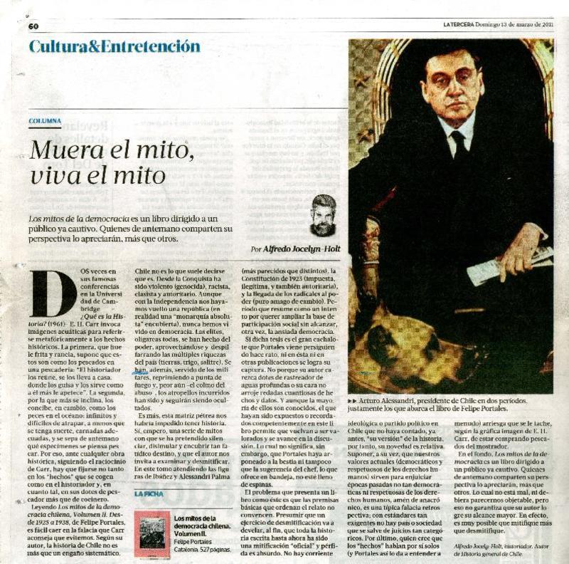 Muera el mito, viva el mito [artículo] Alfredo Jocelyn-Holt.