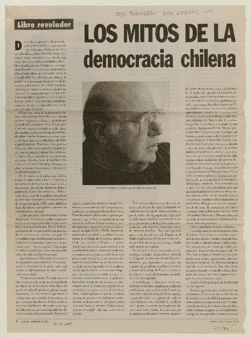 Autores chilenos - Portales, Felipe - Entrevista - Mitos de la democracia chilena