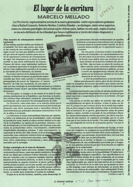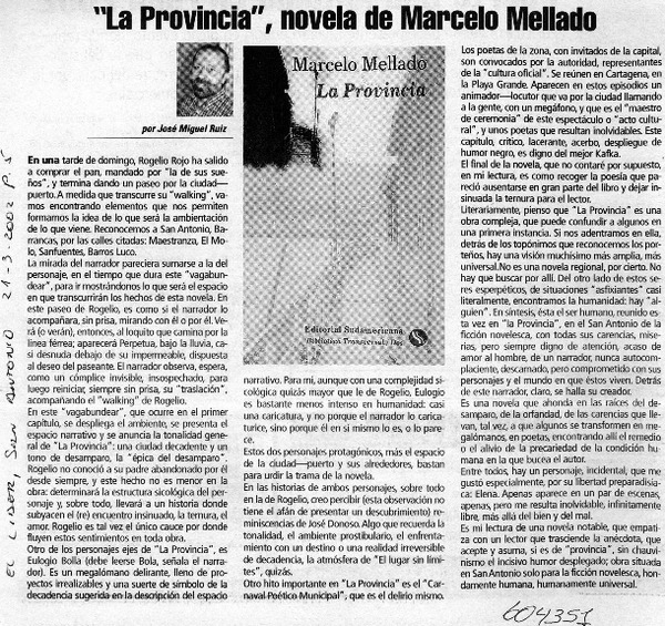"La Provincia", novela de Marcelo Mellado [artículo] José Miguel Ruiz.