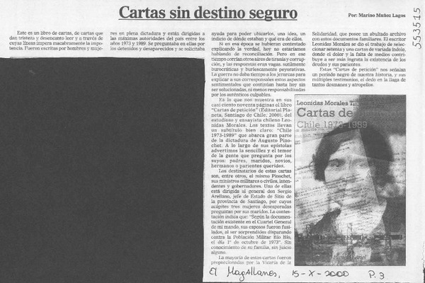 Cartas sin destino seguro [artículo] Marino Muñoz Lagos