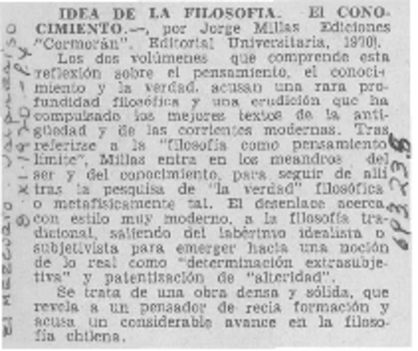 Autores chilenos - Millas, Jorge - Idea de la filosofía, el conocimiento