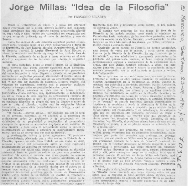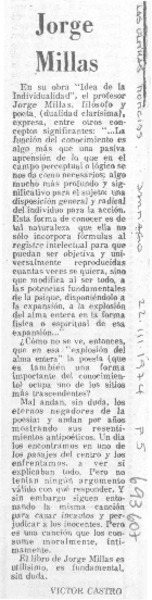 Rechazan conceptos de profesor Jorge Millas. [artículo]