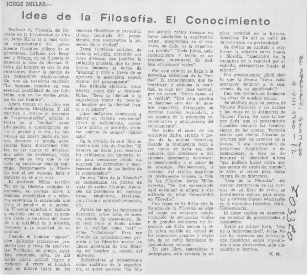 Idea de la filosofía. "El conocimiento" [artículo] V. M.