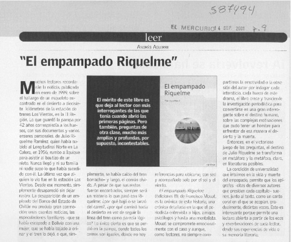 "El empampado Riquelme" [artículo] Andrés Aguirre.