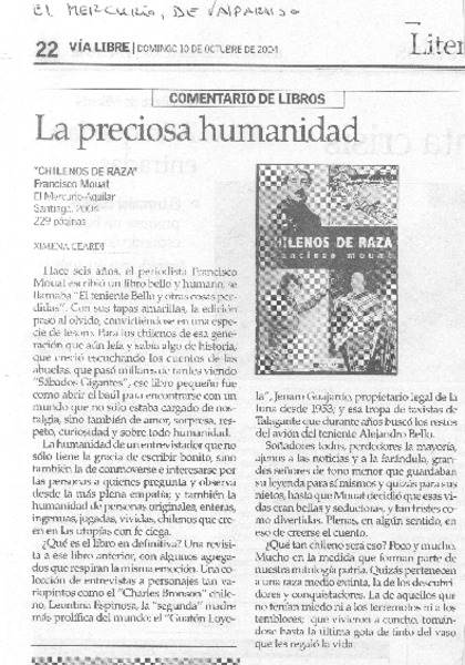 Autores chilenos - Mouat, Francisco - Entrevistas - Chilenos de raza
