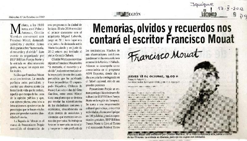 Memorias, olvidos y recuerdo nos contará el escritor Francisco Mouat. [artículo]