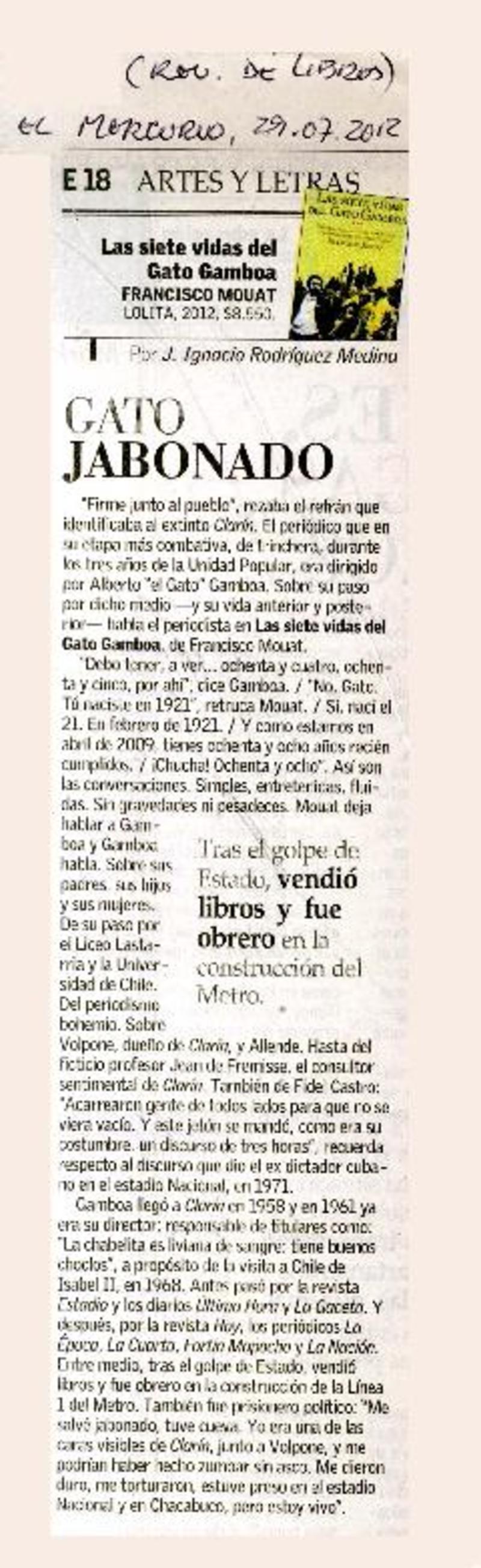 Gato jabonado [artículo] Juan Ignacio Rodríguez Medina.