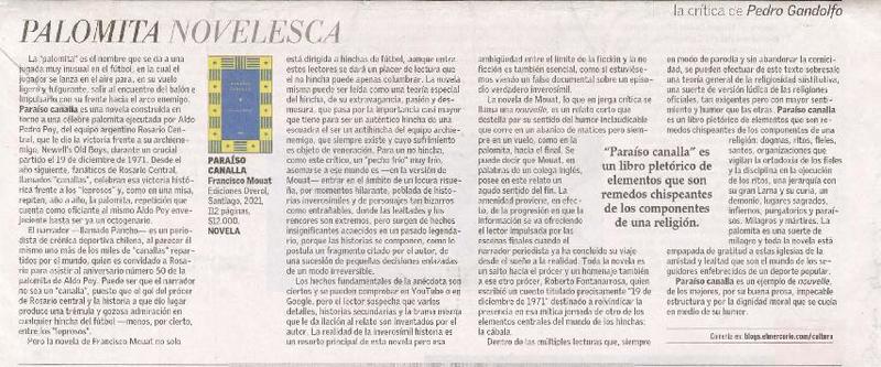Palomita novelesca [artículo] Pedro Gandolfo.