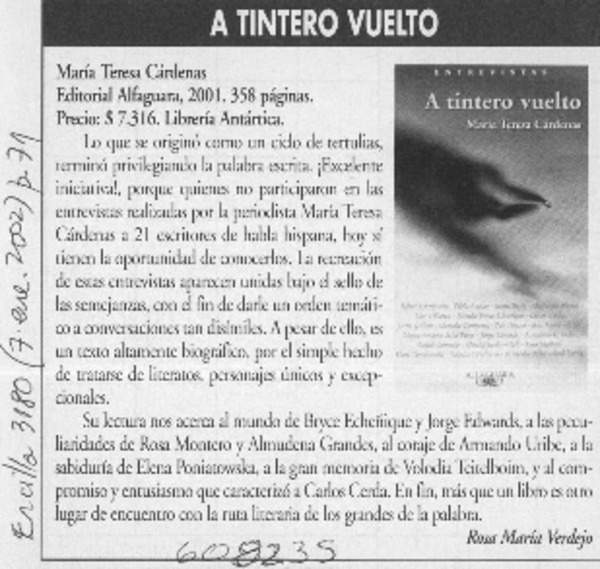 Autoras chilenas - Cárdenas, María Teresa - Entrevista - A tintero vuelto