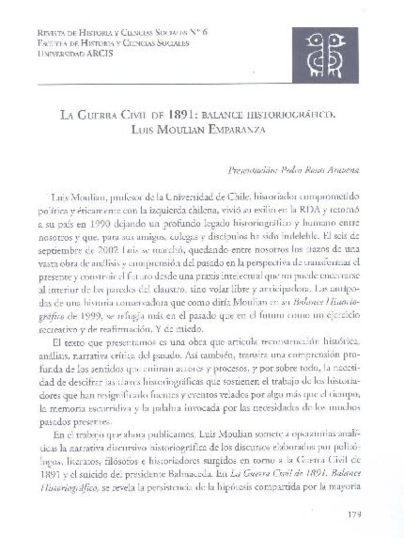 Autores chilenos - Moulian Emparanza, Luis - Guerra Civil de 1891
