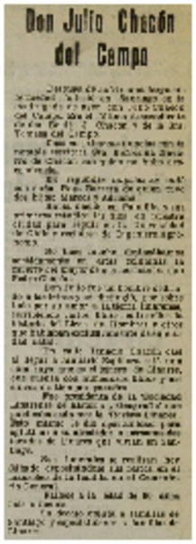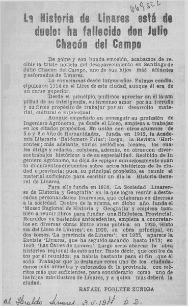 Falleció en Santiago el escritor linarense don Julio Chacón del Campo. [artículo]