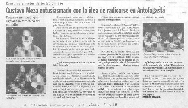 Gustavo Meza entusiasmado con la idea de radicarse en Antofagasta. (entrevistas) [artículo] Mauricio Plaza M.