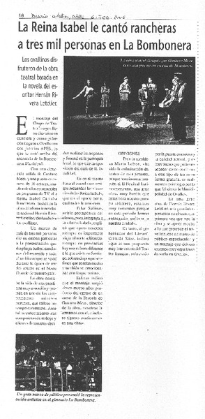 La Reina Isabel le cantó rancheras a tres mil personas en La Bombonera [artículo]
