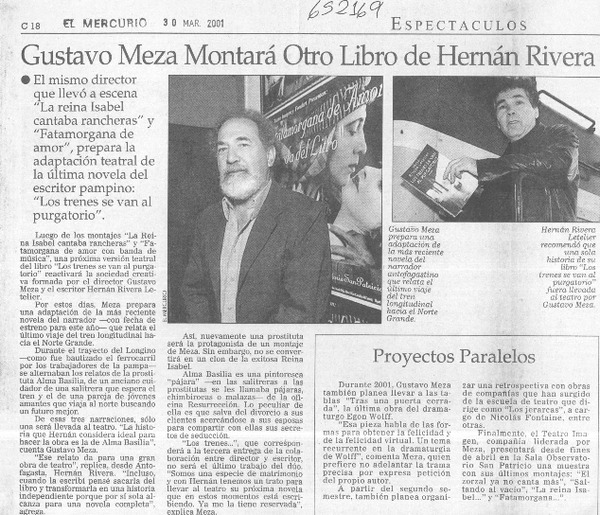 Gustavo Meza montará otro libro de Hernán Rivera [artículo]