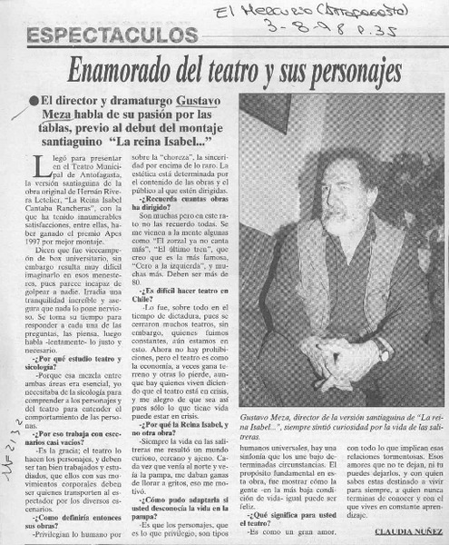 Enamorado del teatro y sus personajes [entrevista] [artículo] : Claudia Núñez.
