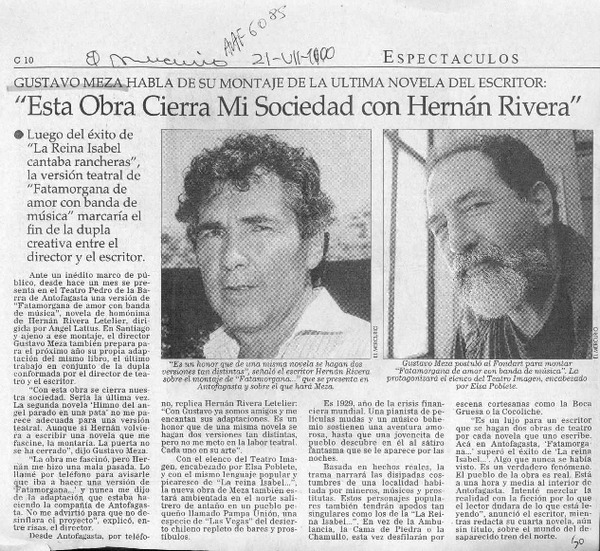 Autores chilenos - Entrevistas - Meza Wevar, Gustavo - Rivera Letelier, Hernán - Reina Isabel cantaba rancheras
