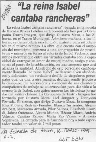 La Reina Isabel cantaba rancheras [artículo] Lepoldo Pulgar I.