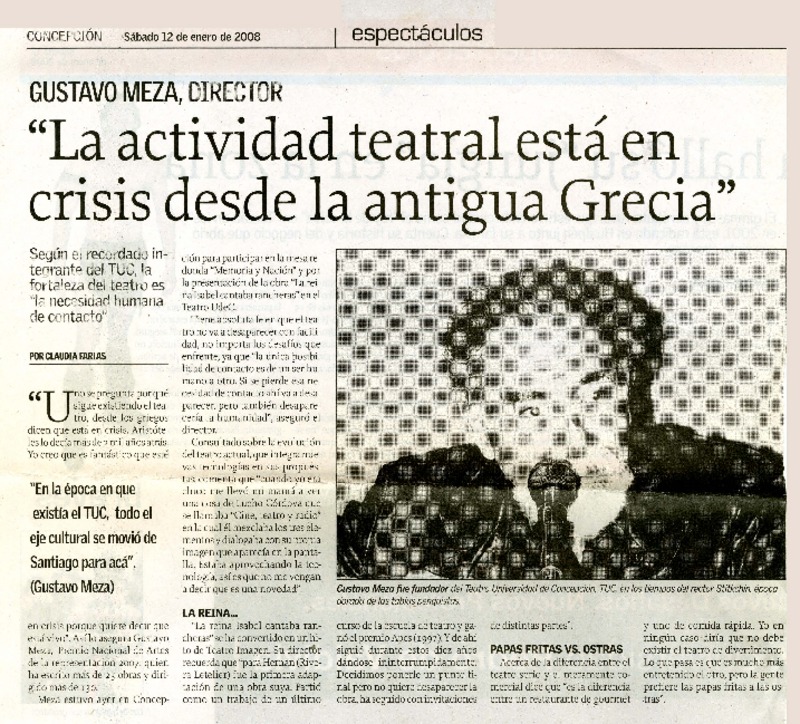 "La actividad teatral está en crisis desde la antigua Grecia" [artículo]Claudia Farías.