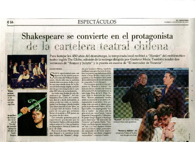 Shakespeare se convierte en el protagonista de la cartelera teatral chilena [artículo] Eduardo Miranda