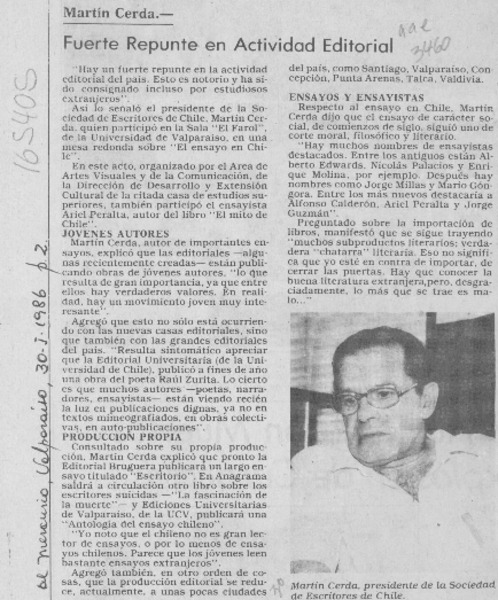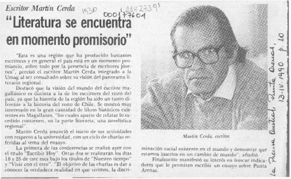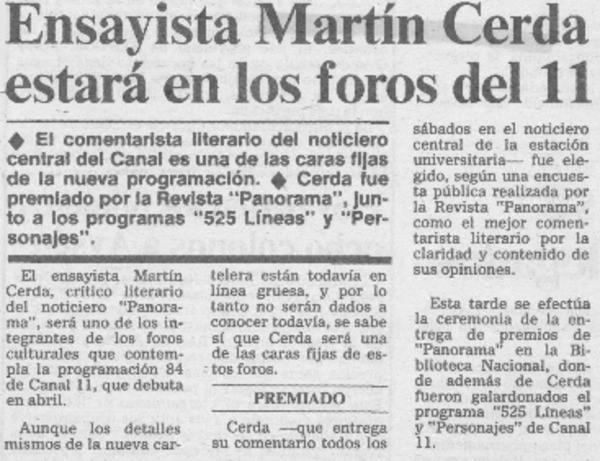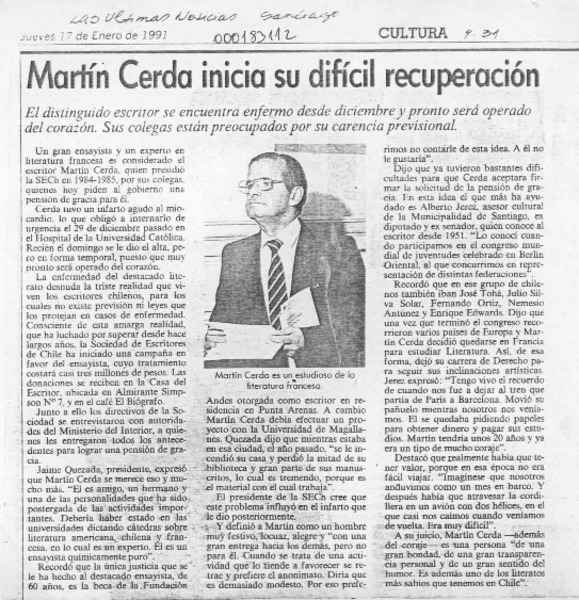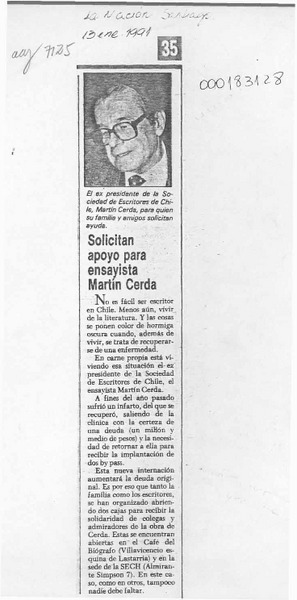 Solicitan apoyo para ensayista Martín Cerda [artículo].