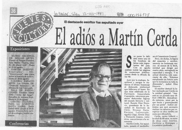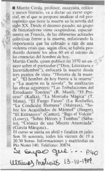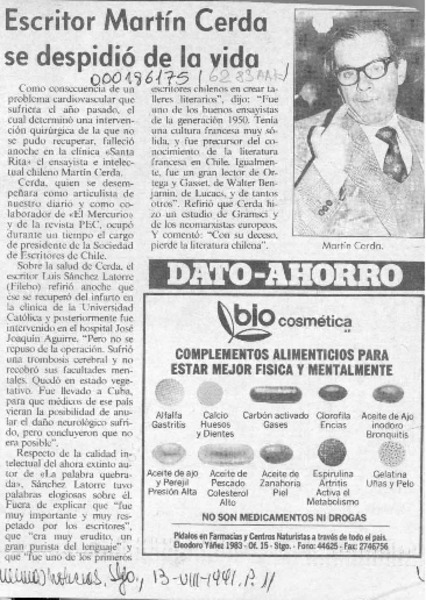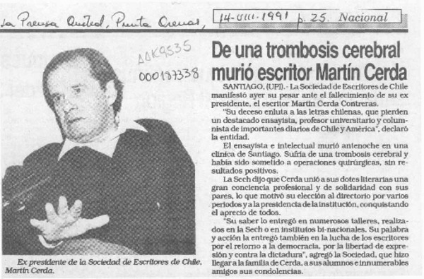 De una trombosis cerebral murió escritor Martín Cerda [artículo].