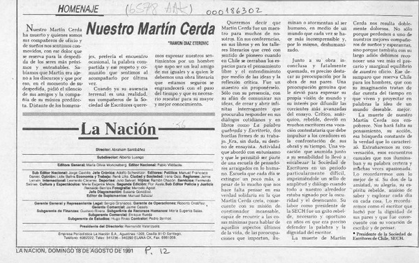 Nuestro Martín Cerda [artículo] Ramón Díaz Eterovic.