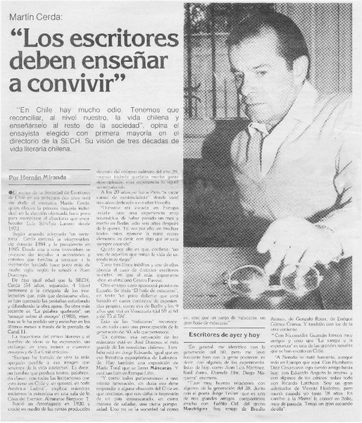 "Los escritores deben enseñar a convivir" [artículo] Hernán Miranda.