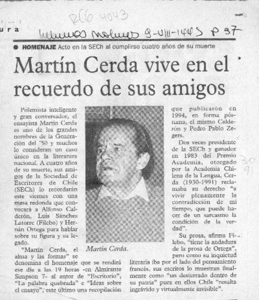 Martín Cerda vive en el recuerdo de sus amigos [artículo].