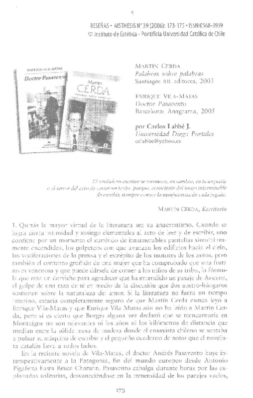 Autores chilenos - Autores españoles - Cerda, Martín - Palabras sobre palabras - Vila-Matas, Enrique - Doctor Pasavento
