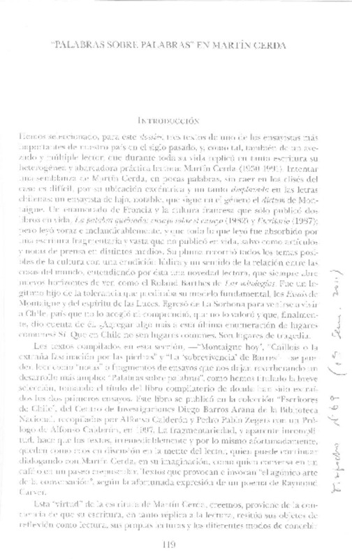 Autores chilenos - Cerda, Martín - Palabras sobre palabras