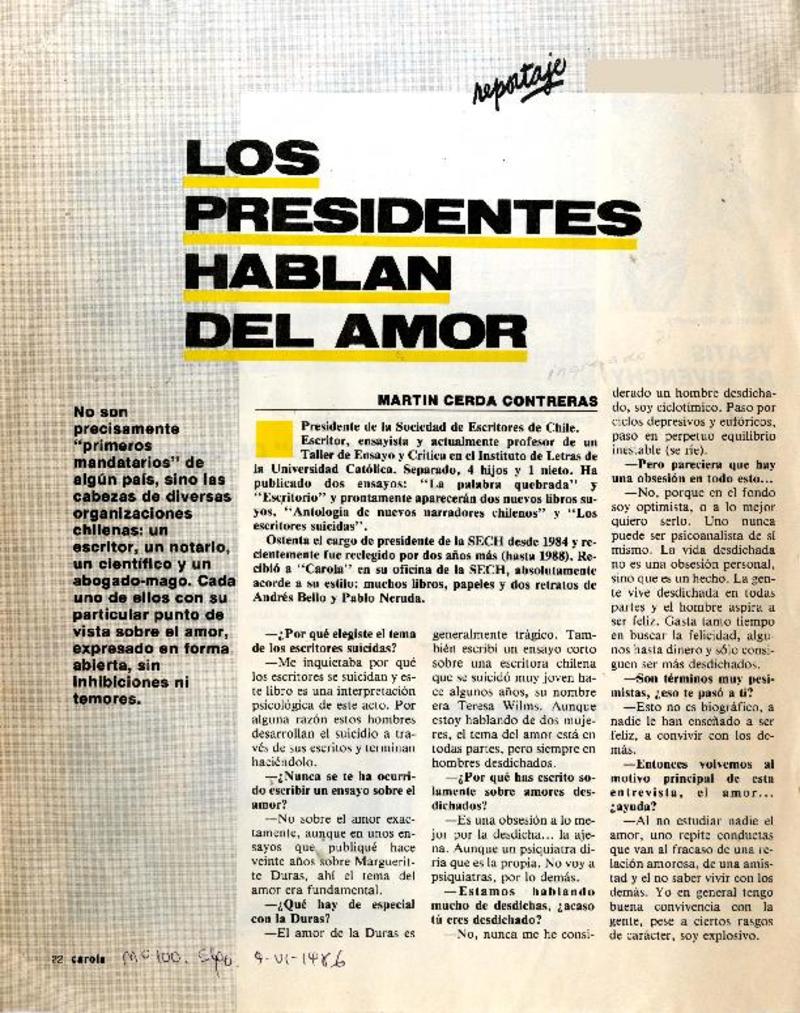 Los presidentes hablan del amor [artículo] Bernardita Maturana.