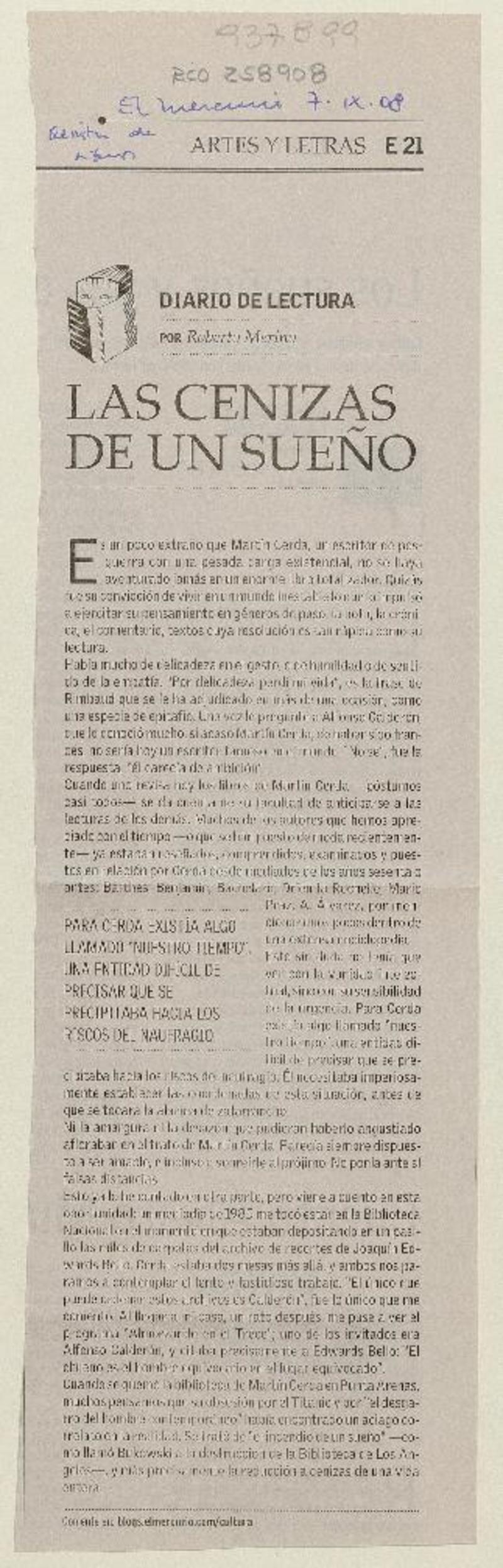 Las cenizas de un sueño [artículo] Roberto Merino.