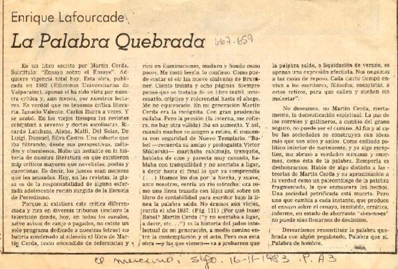 La Palabra quebrada [artículo] Enrique Lafourcade.