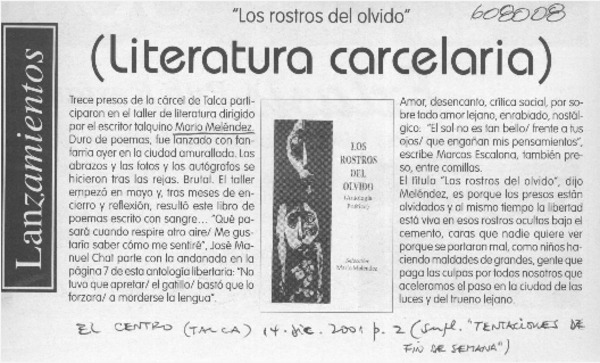 Autores chilenos - Meléndez, Mario - Rostros del olvido