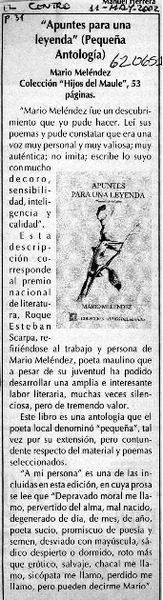 Autores chilenos - Meléndez, Mario - Apuntes para una leyenda