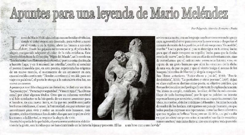 Apuntes para una leyenda de Mario Meléndez [artículo] Edgardo Alarcón Romero.
