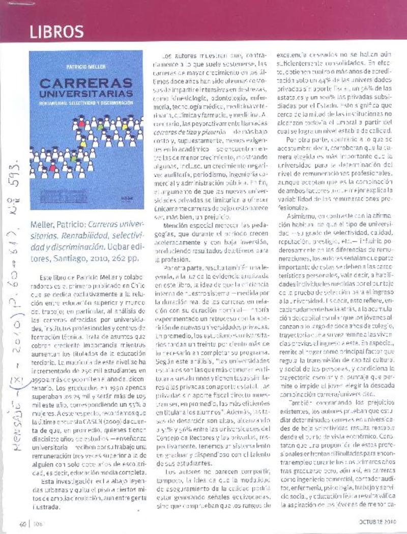 Autores chilenos - Meller, Patricio - Carreras universitarias