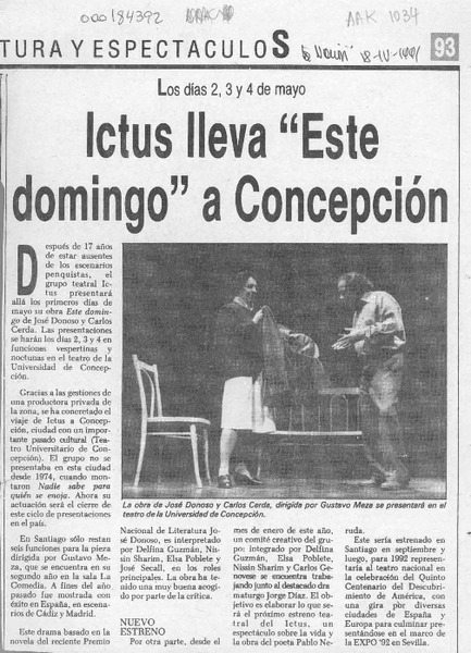 Ictus lleva "Este domingo" a Concepción [artículo].