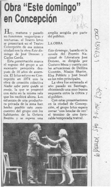 Obra "Este domingo" en Concepción [artículo].