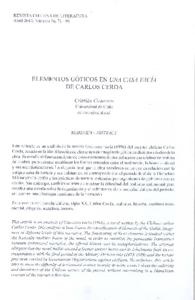 Elementos góticos de Una casa vacía de Carlos Cerda [artículo] Cristián Cisternas.