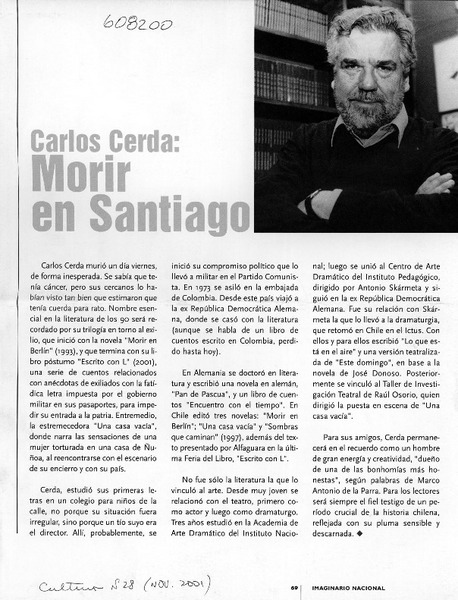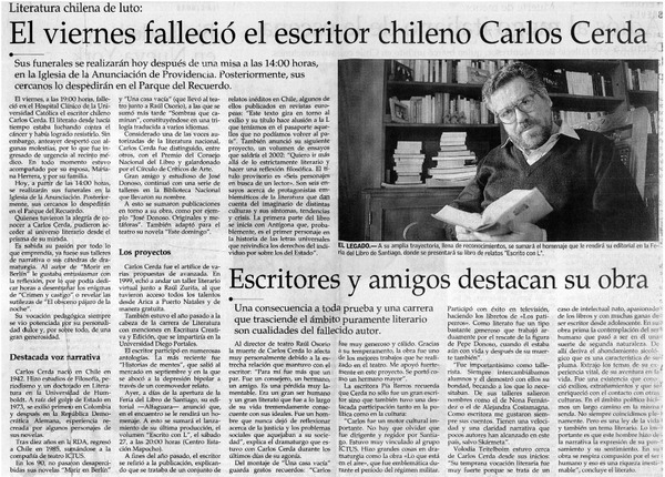 Literatura chilena perdió a Carlos Cerda [artículo].