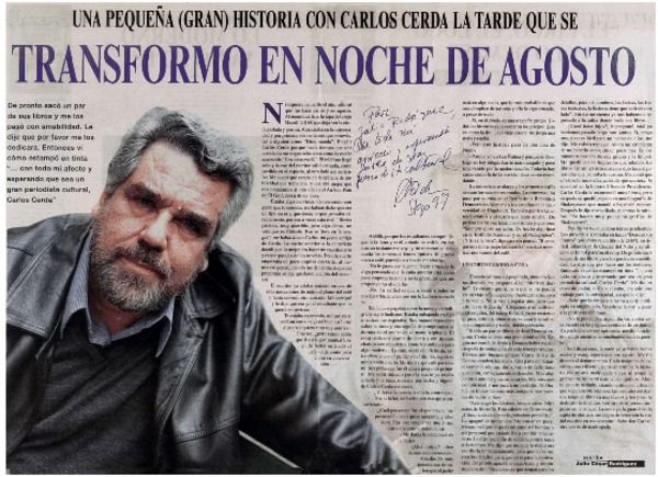 Una pequeña (gran) historia con Carlos Cerda la tarde que se transformó en noche de agosto [artículo] Julio César Rodríguez.