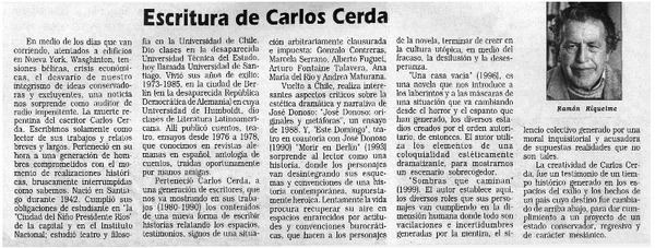 Escritura de Carlos Cerda [artículo] Ramón Riquelme.
